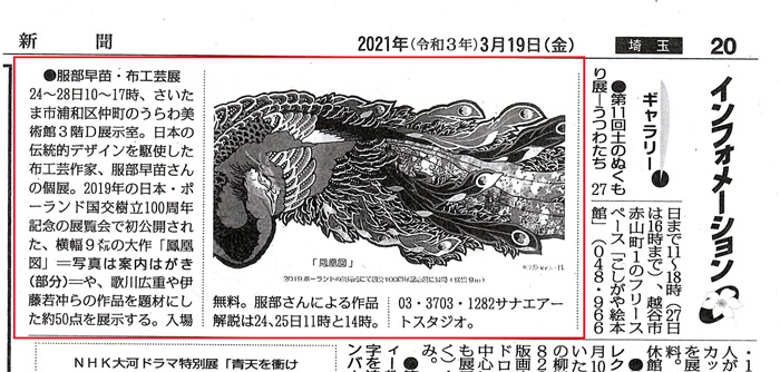 Sanae Hattori Textile Craft Exhibition Report Urawa Art Museum - 24th March 2021 to 28th March 2021 |
